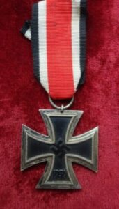 - La Croix de Fer de 2ème classe (EK2) : Portée traditionnellement via un ruban à la boutonnière de la veste. C’est la pièce d’entrée idéale pour une collection de militaria allemand.