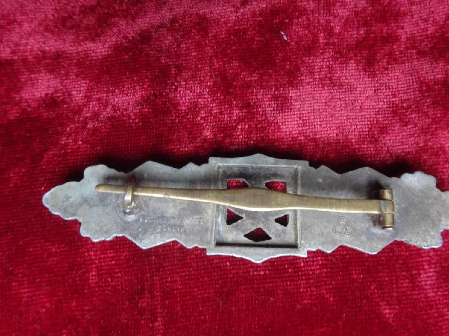 Agrafe de combat rapproché. Fabricant FLL (Friedrich Linden, Lüdenscheid). Il la petite plaque au centre. Paiement possible en plusieurs versements sur demande.
