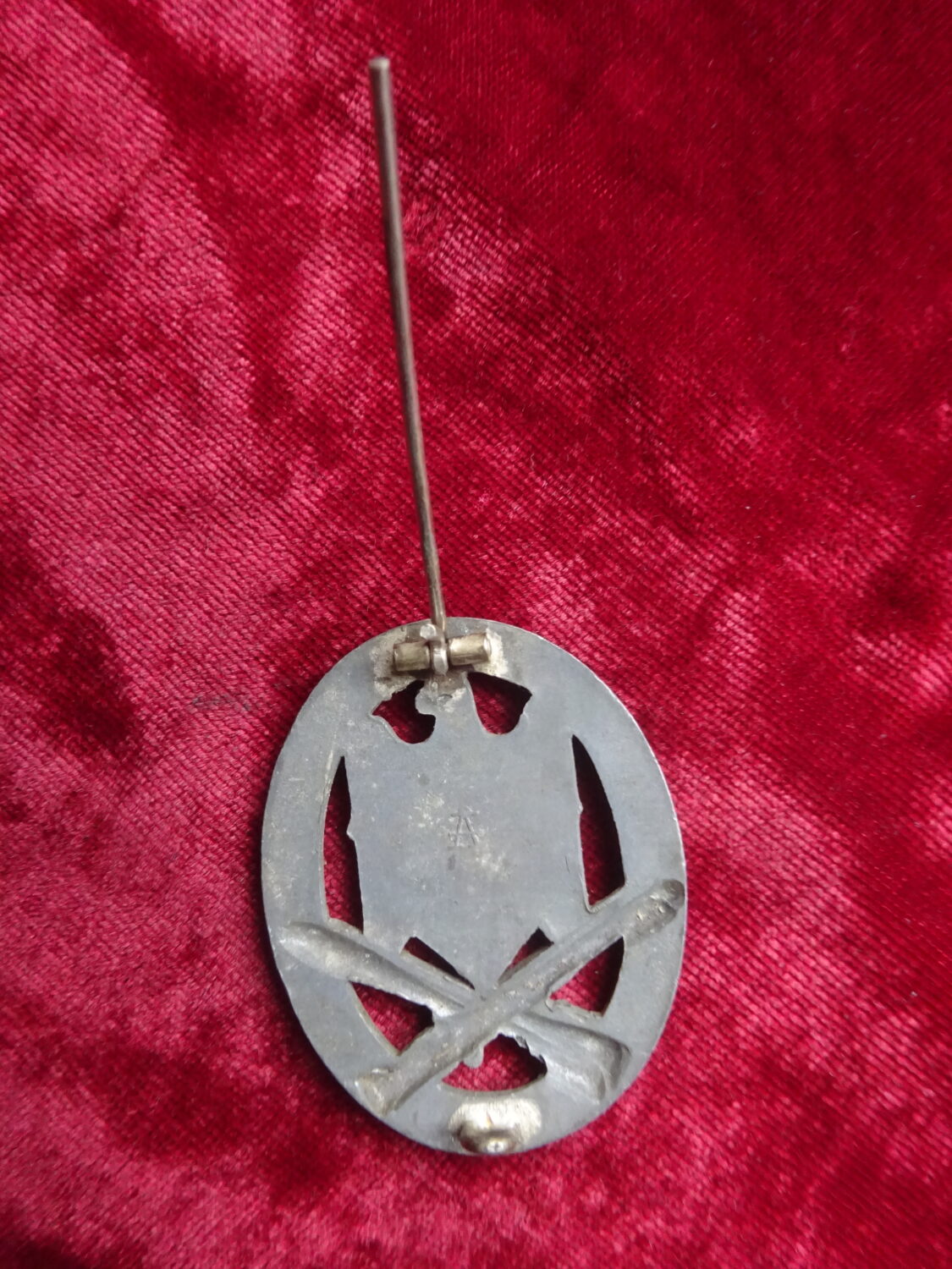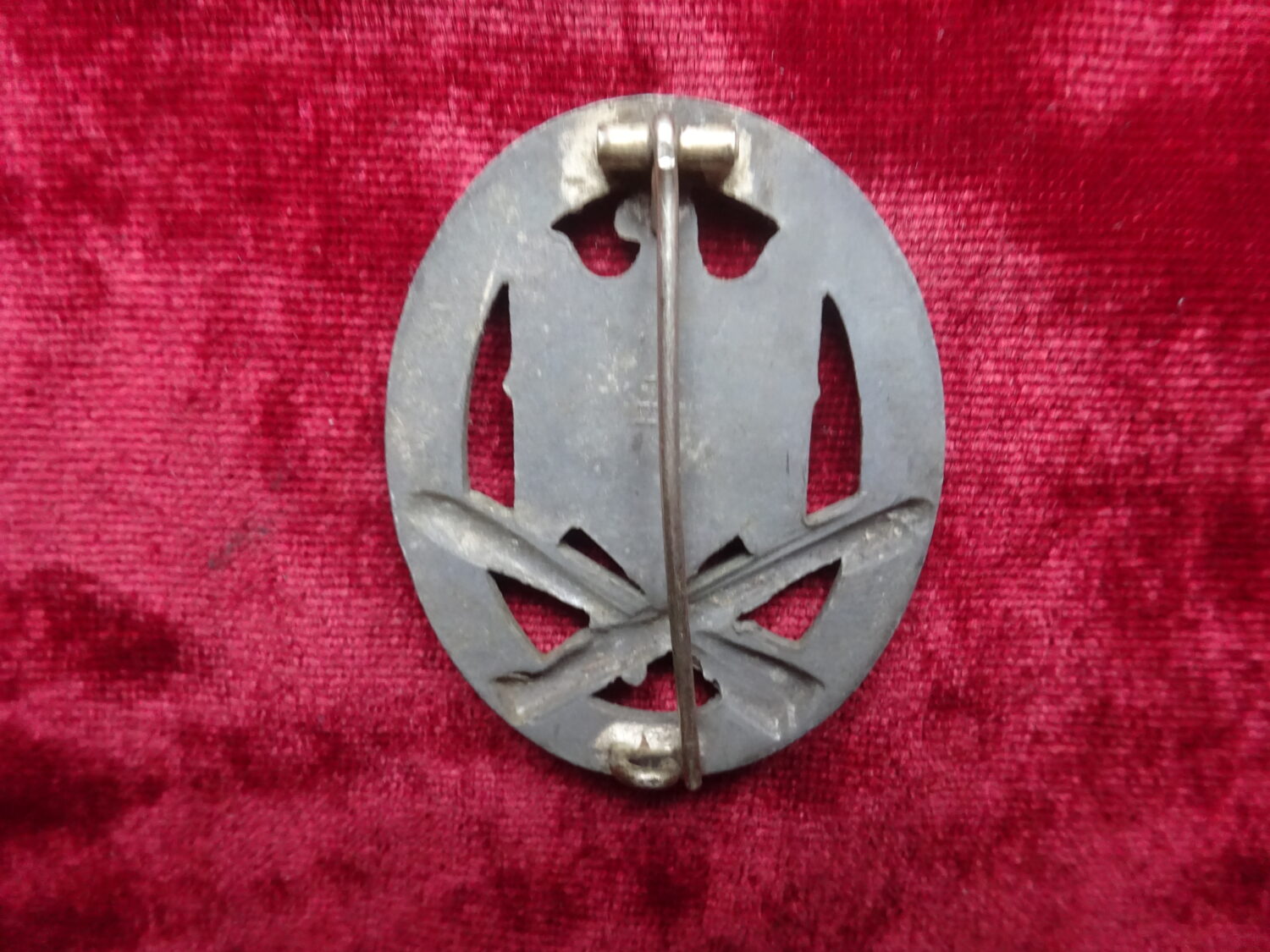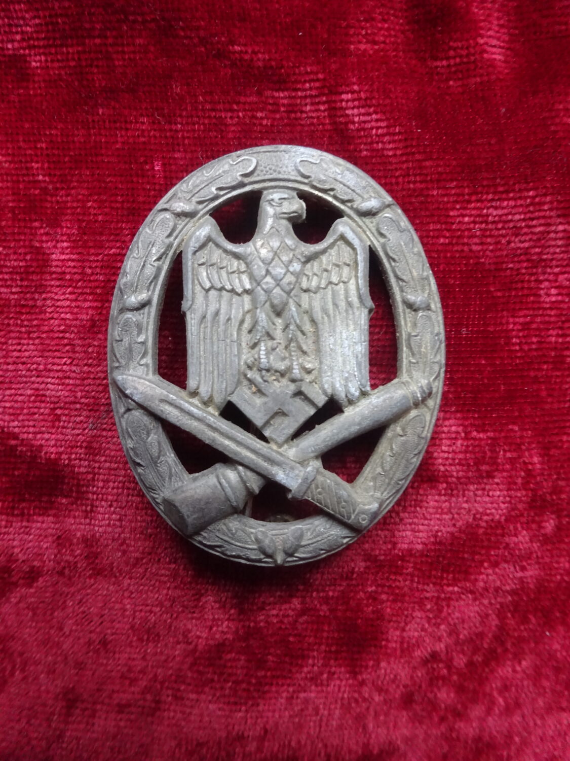Badge assaut général. Fabricant Assman. Assez bon état. Un peu de jeu dans l’attache.