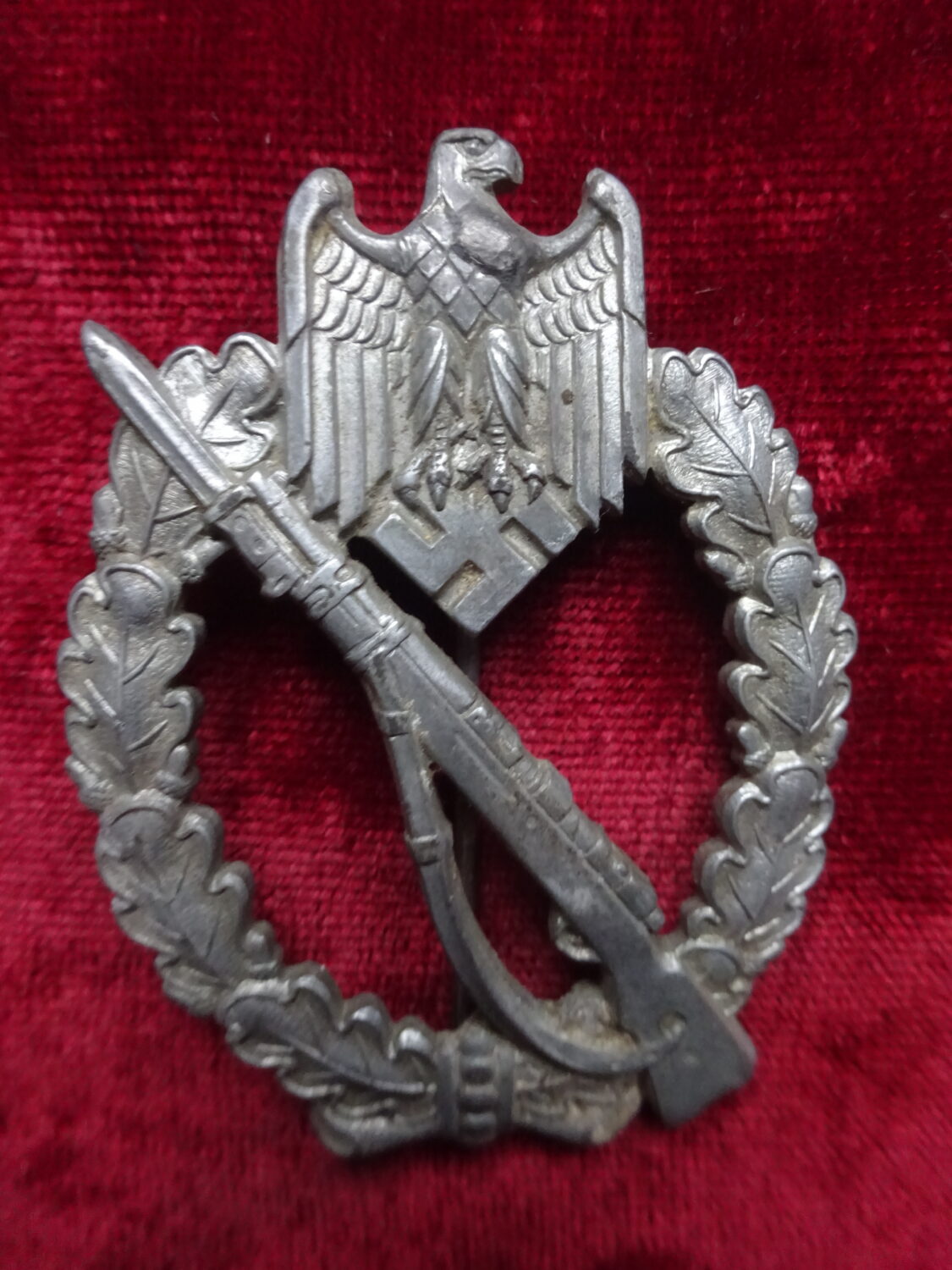 Badge assaut infanterie. Le crochet de fixation du bas est cassé (voir photos).
