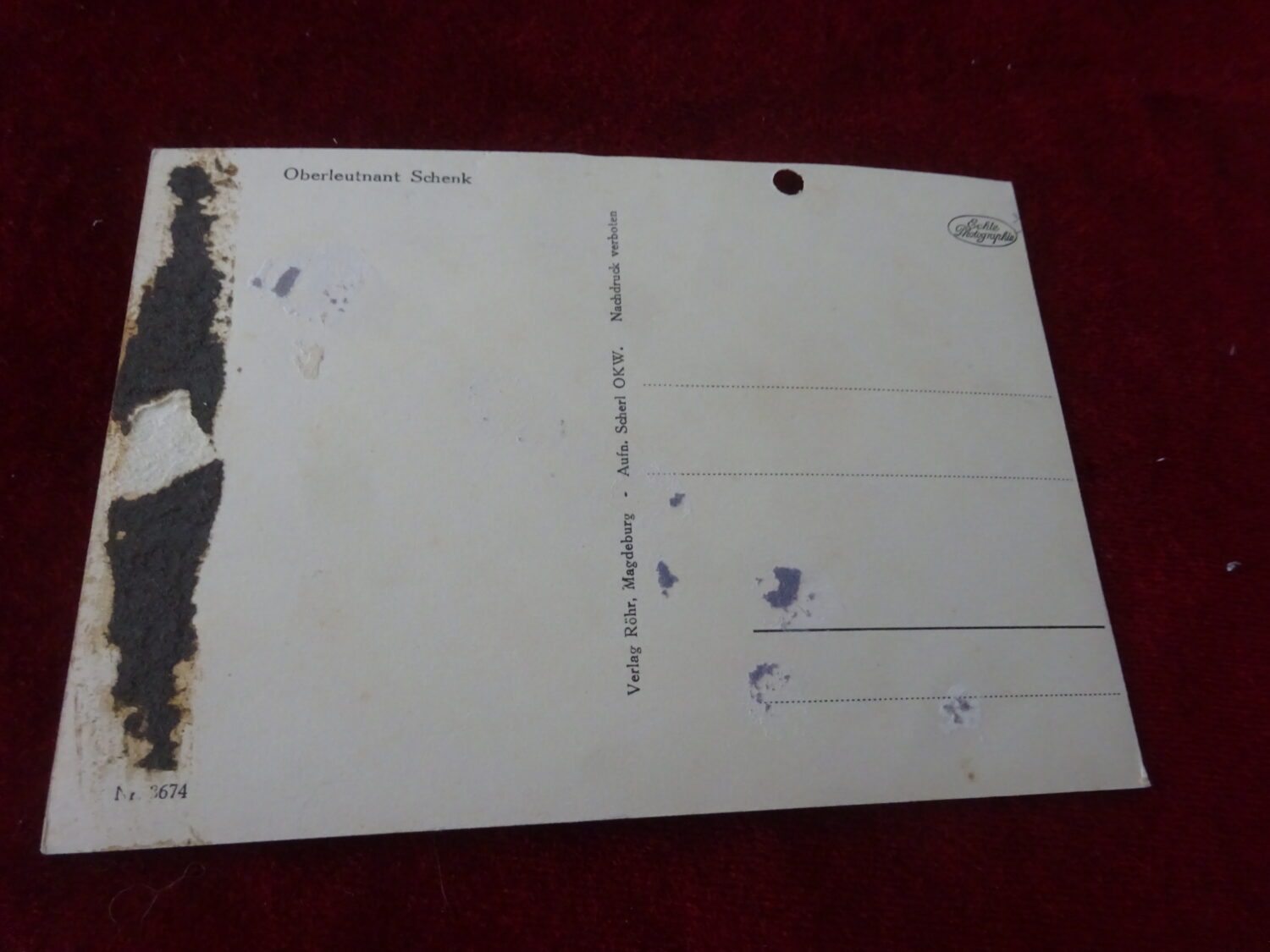 Carte postale Oberleutnant Schenk