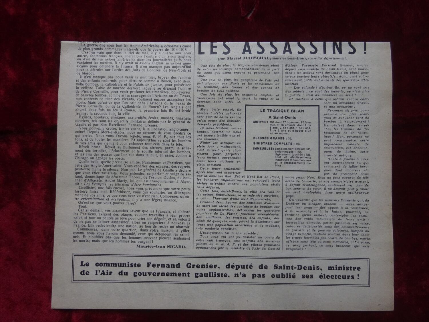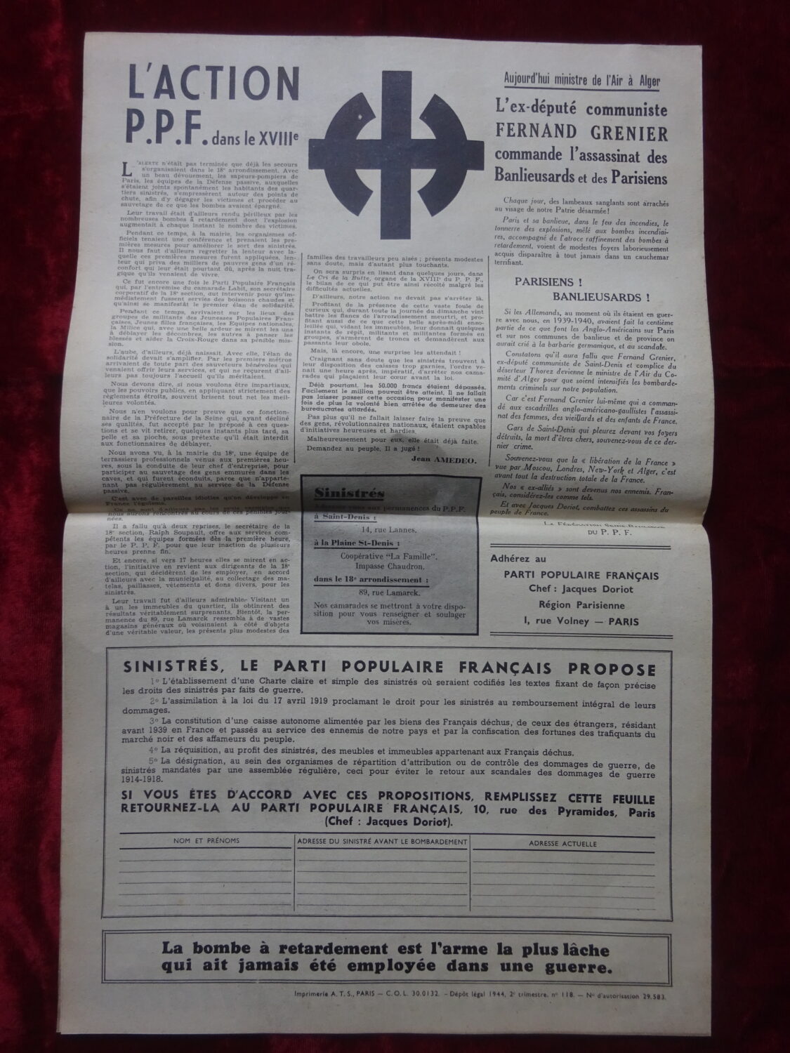 Dépliant du Parti Populaire Français de Jacques Doriot. 4 pages 43,5 x 27 cm. Très bon état. Rare.