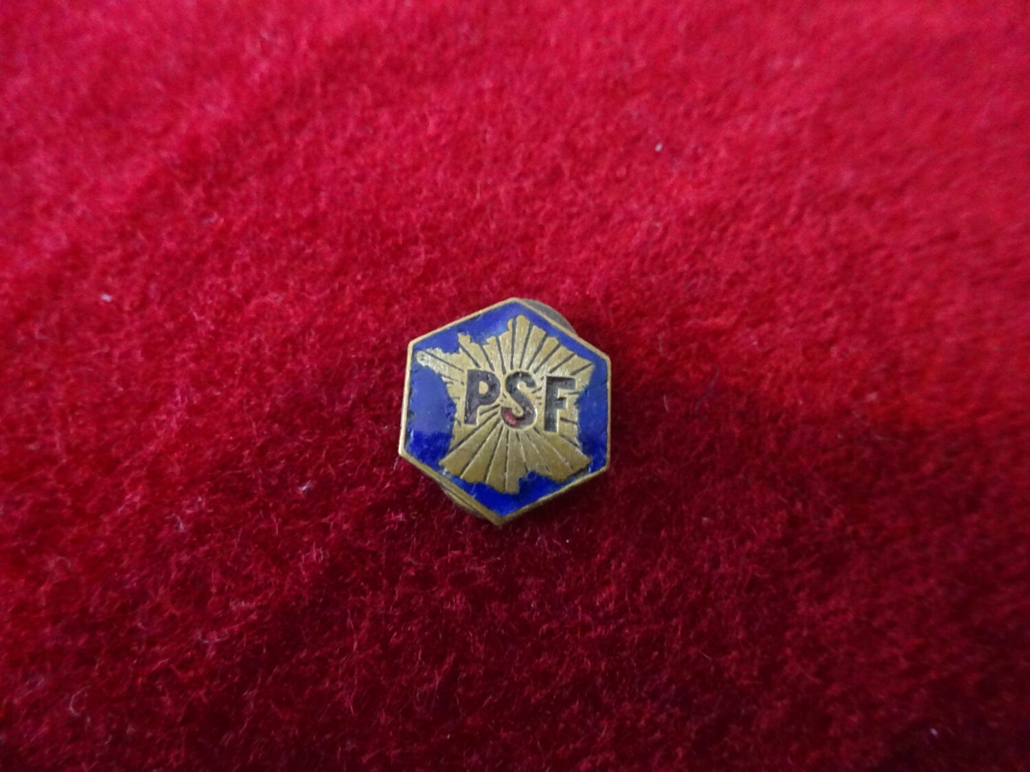 Insigne boutonnière du Parti social français (PSF). Marquage fabricant. Très bon état.