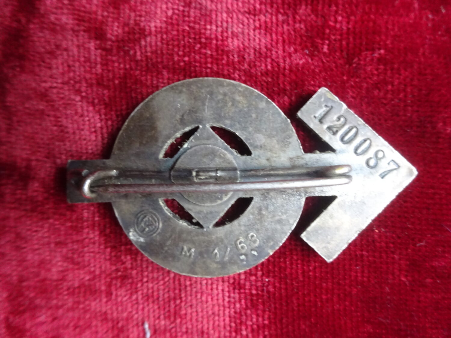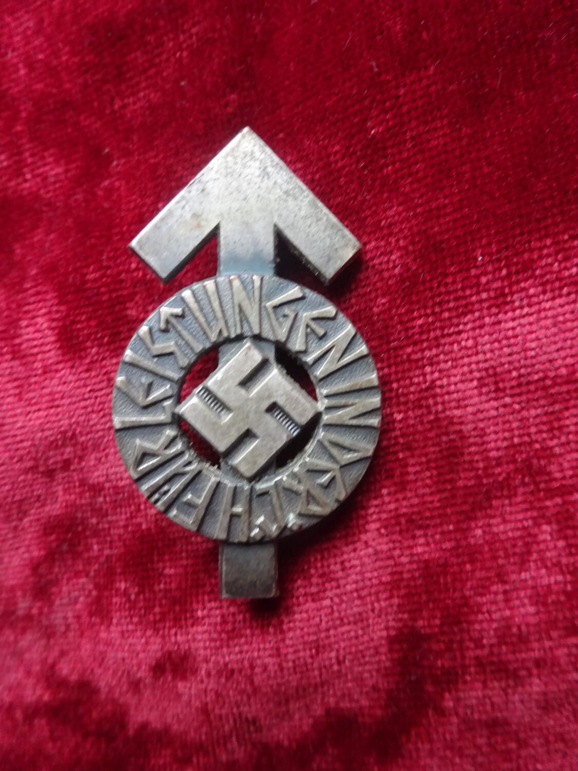 Insigne Hitlerjugend de réussite sportive (Leistungsabzeichen). Numéroté 120087. Marquage RZM M1/63. Fabricant Steinhauer & Lück. Bon .tat.