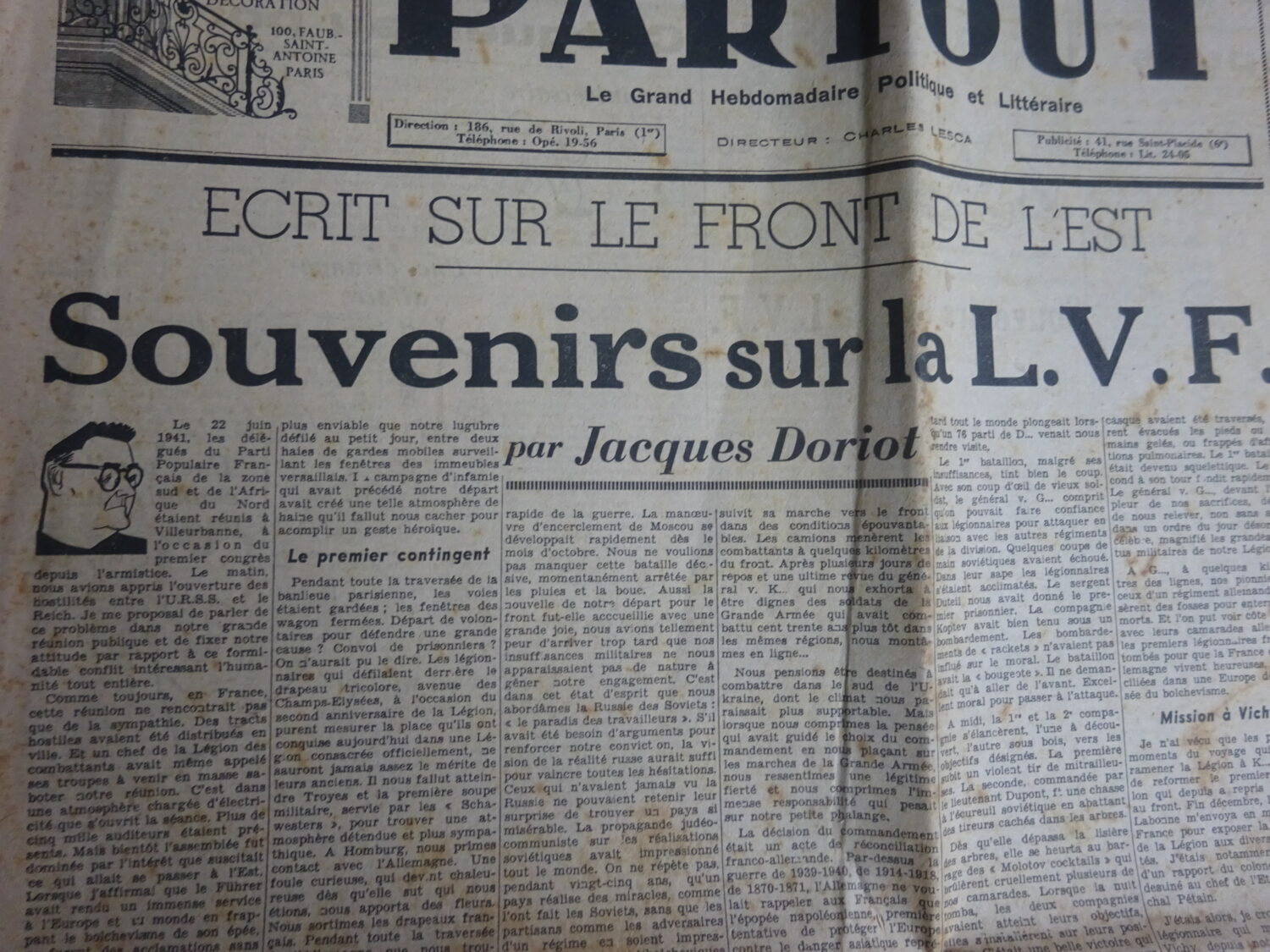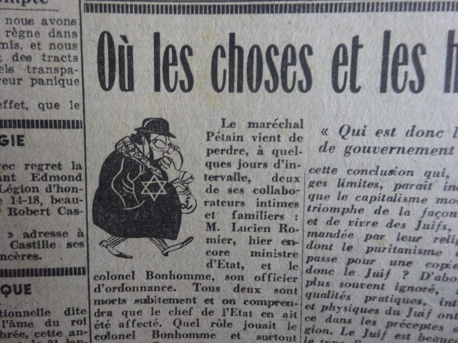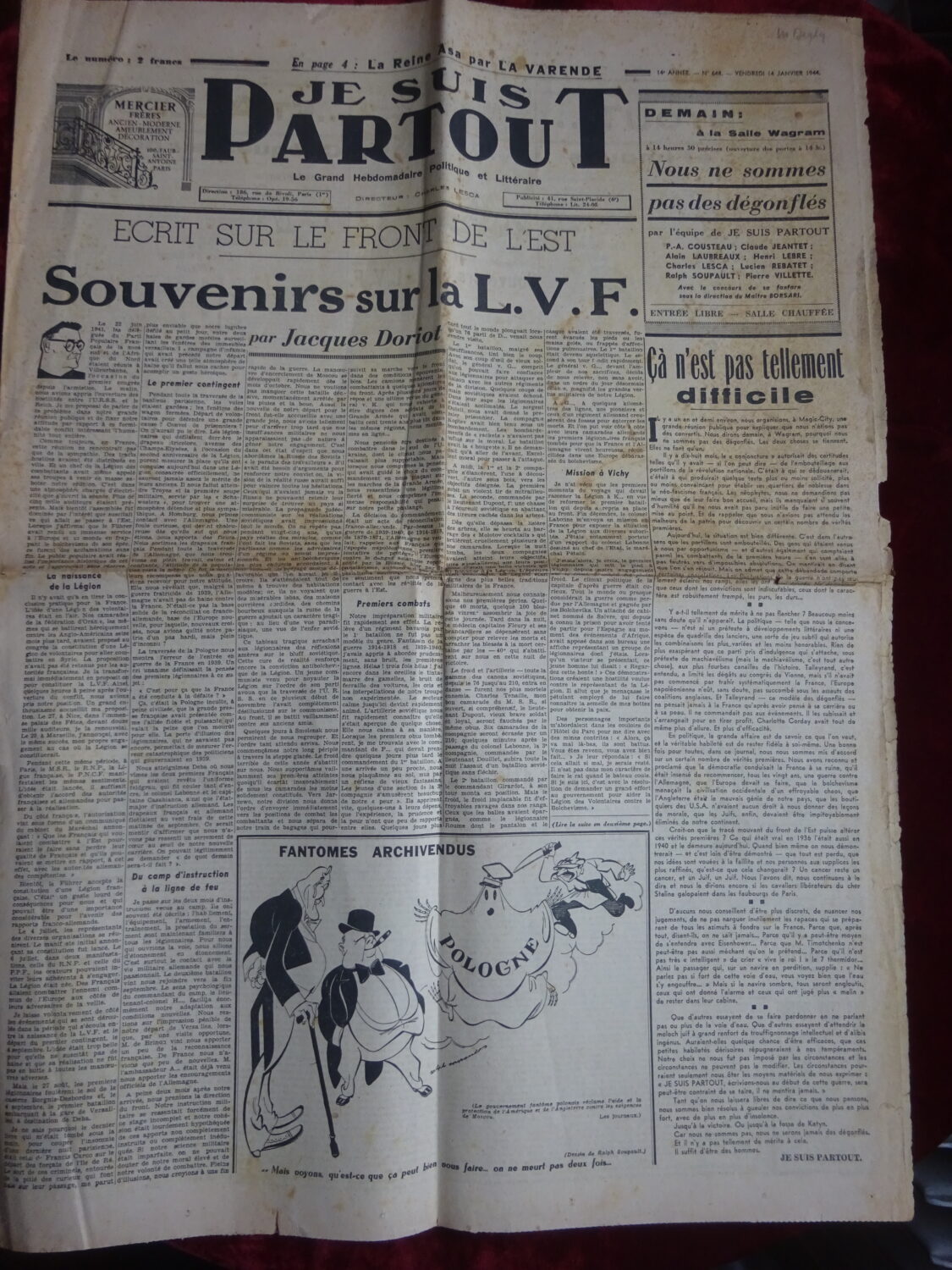 Journal Je Suis Partout. Numéro du 14 janvier 1944. Grand format (43 cm x 60 cm). 6 pages.