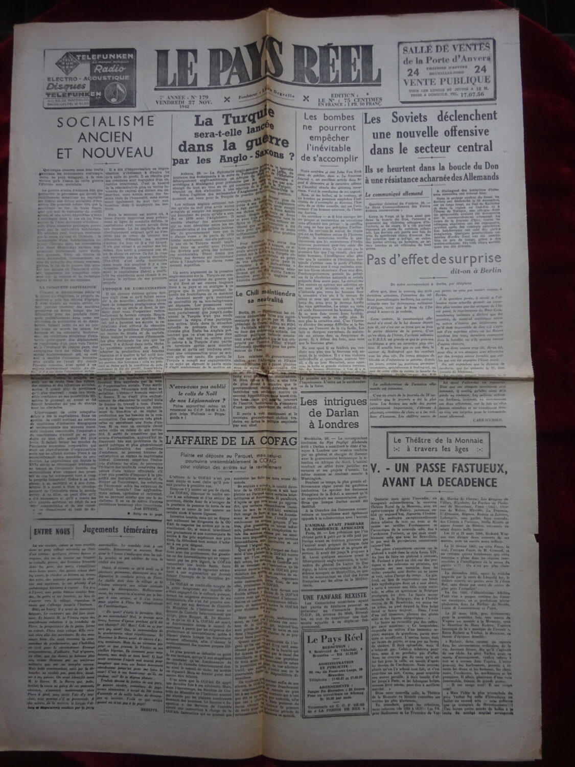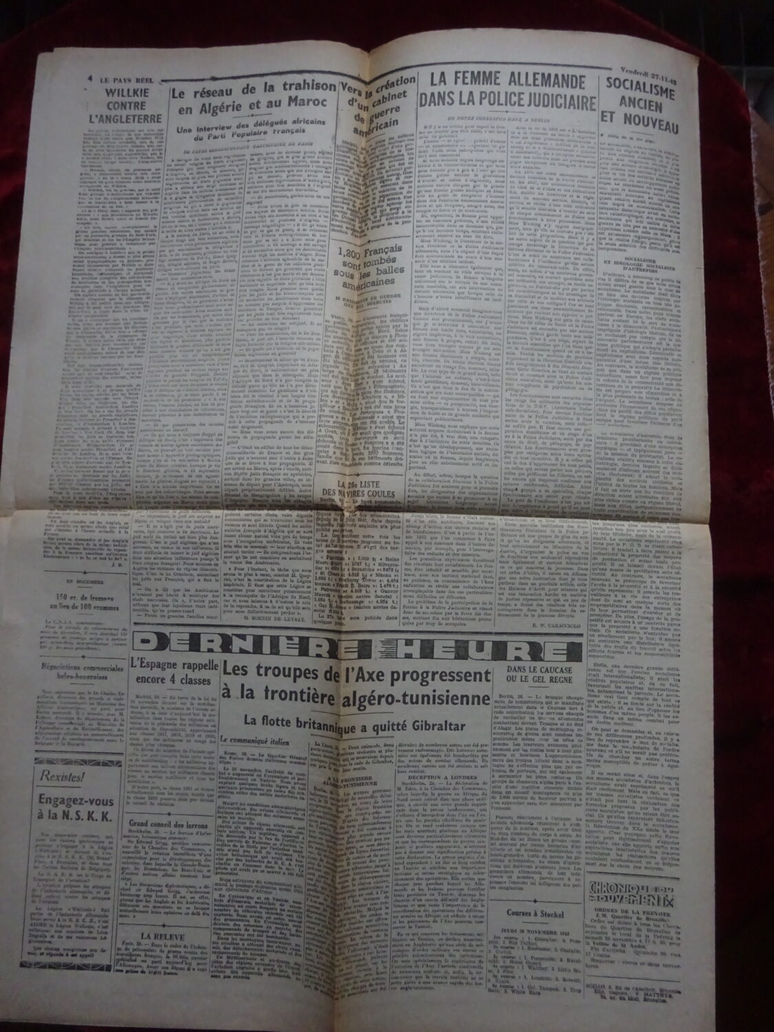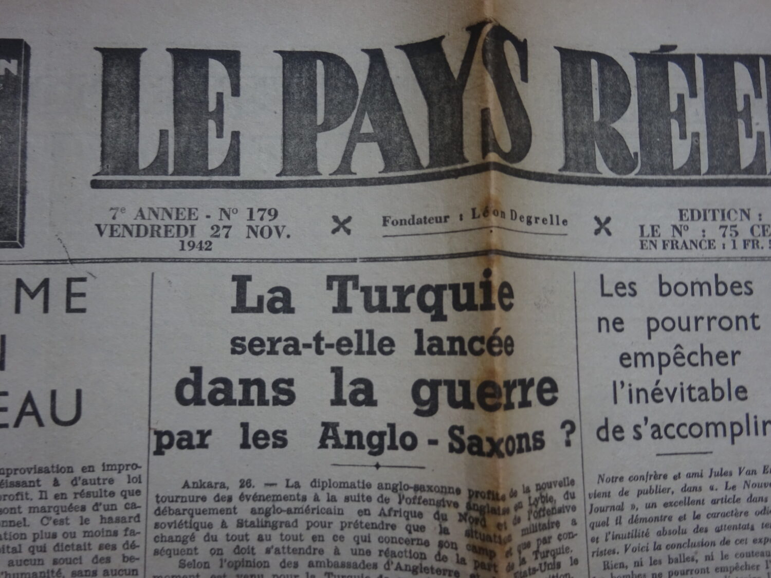 Quotidien Le Pay Réel – Léon Degrelle – numéro du 27 novembre 1942.