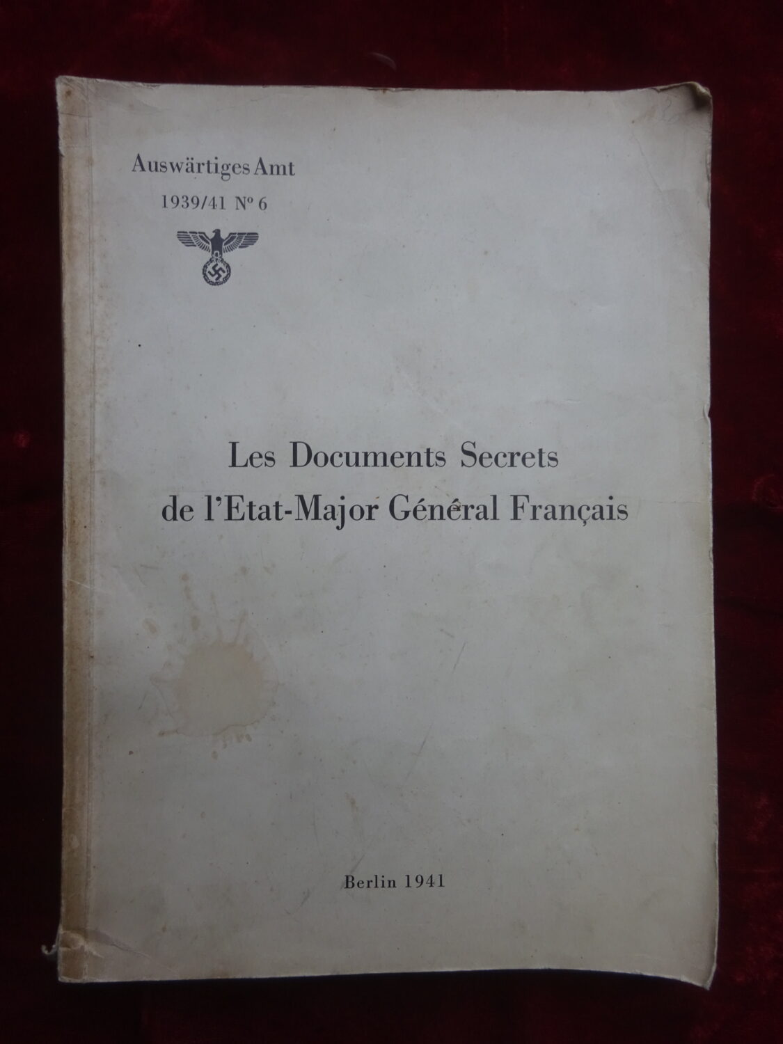 Auswärtiges Amt; 1939/1941 N°6. Les documents secrets de l’état-major français, Berlin, 1941, 400 p.