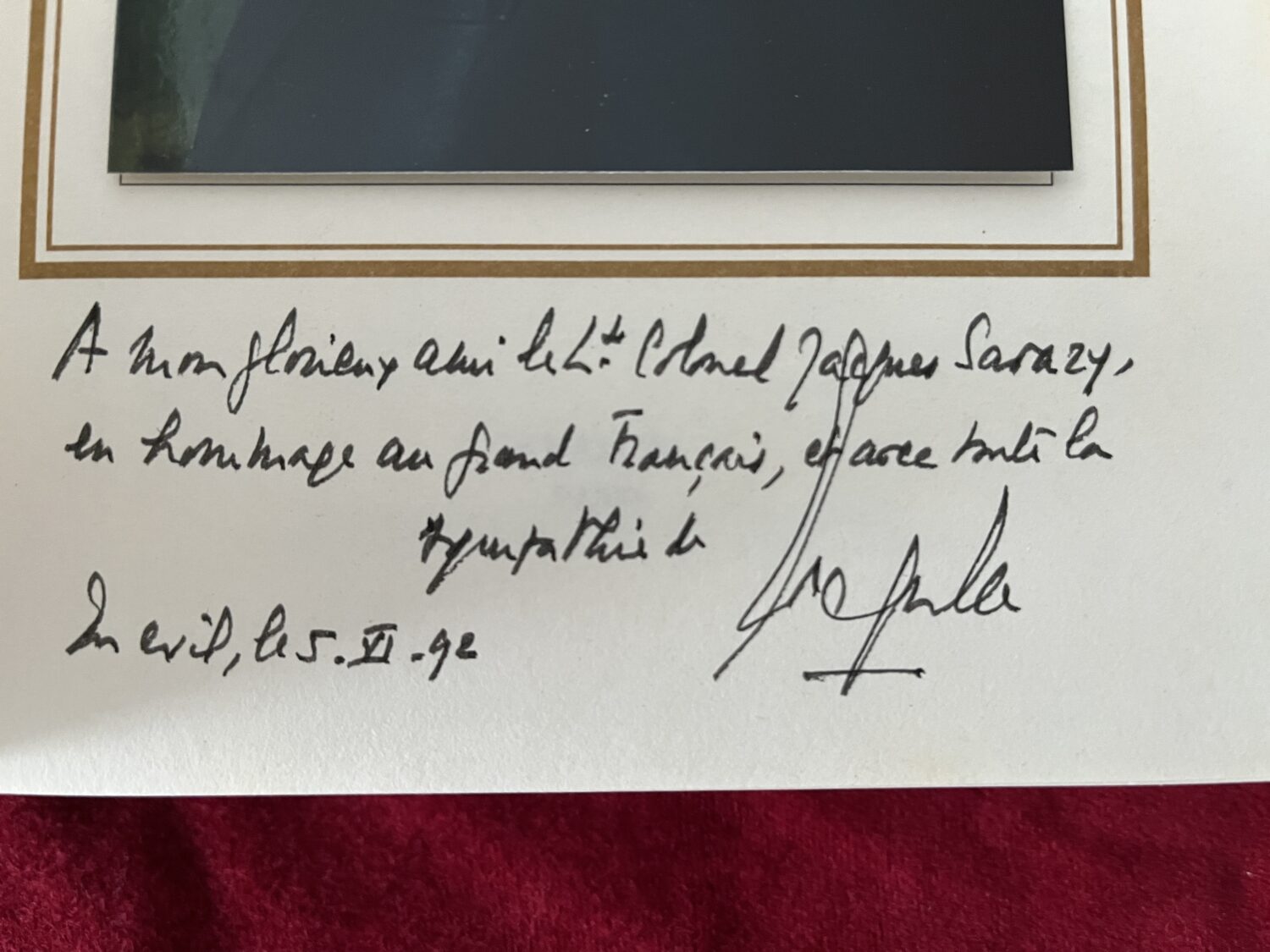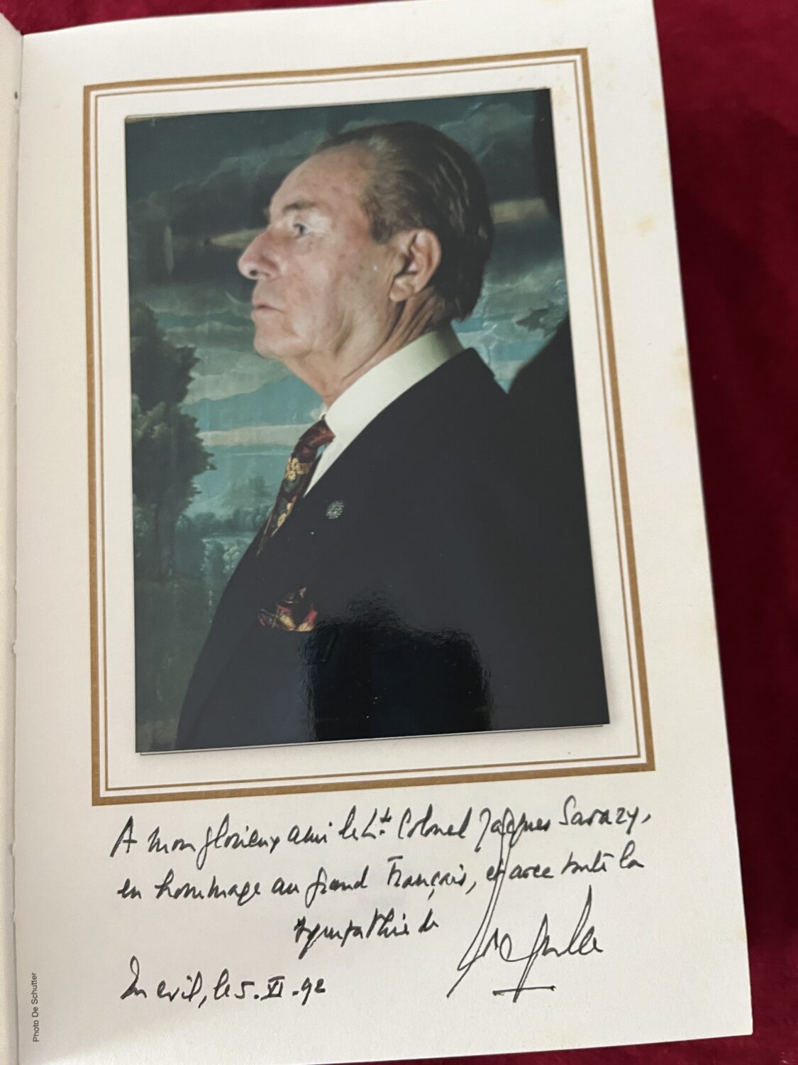 Livre La cohue de 40 de Léon Degrelle comportant une dédicace au lieutenant colonel Jacques Sarazy datée du 5 juin 1992. Bon état.