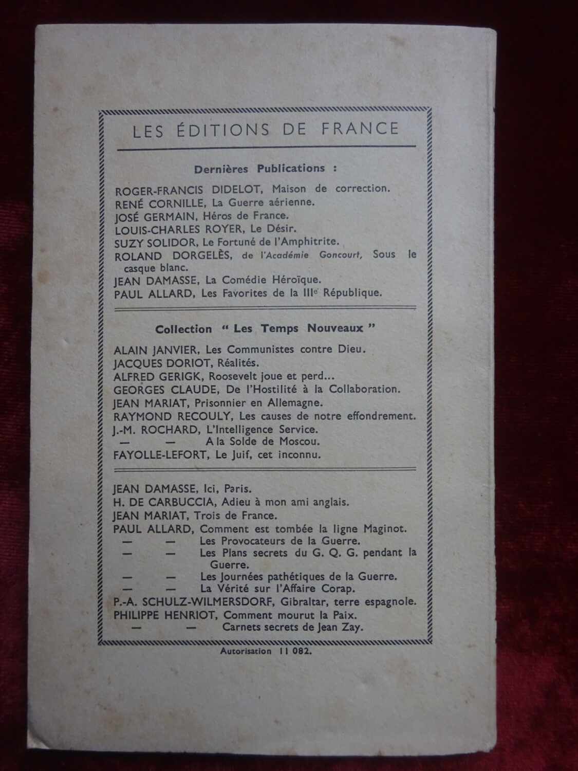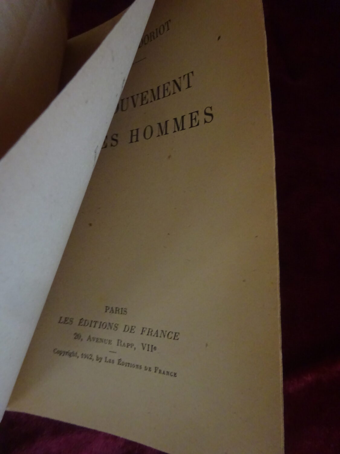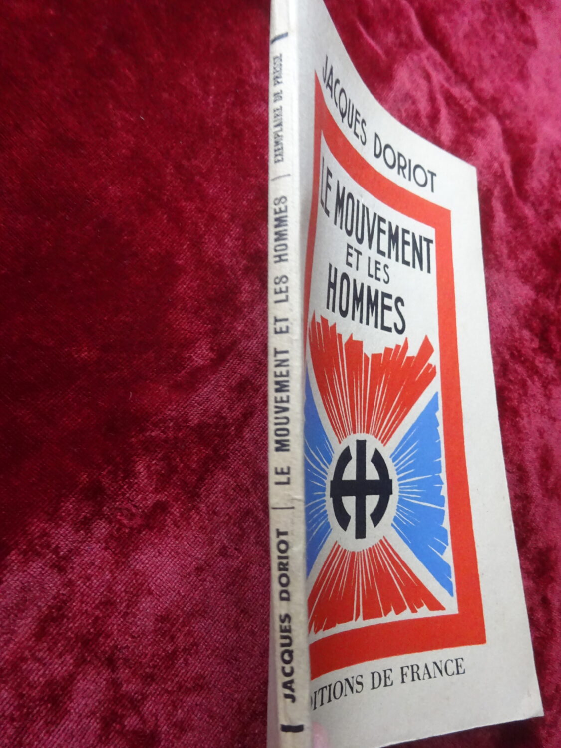 Livre Le Mouvement et les hommes de Jacques Doriot. Exemplaire de presse non coupé + petit tract de présentation du livre. les Éditions de France 1942. 58 pages. 12 x 18, 5 cm. Parfait état