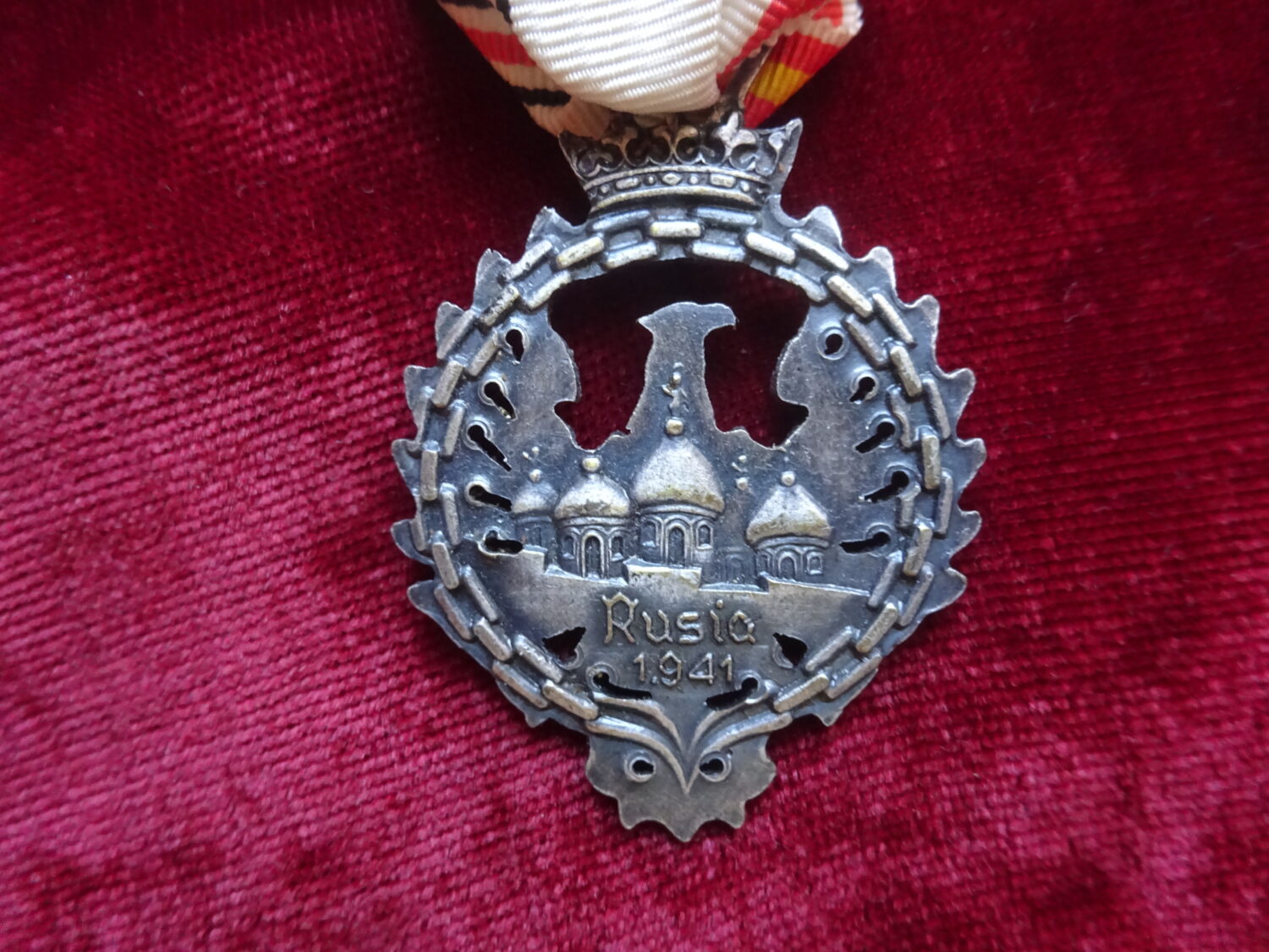 NB: Elle a été instituée le 9 novembre 1943 par l’Espagne nationaliste pour récompenser les services rendus sur le front russe pendant la Seconde Guerre mondiale. Cette médaille était décernée aux volontaires espagnols de la « Division Bleue », officiellement la 250e division d’infanterie, qui combattaient aux côtés de la Wehrmacht.