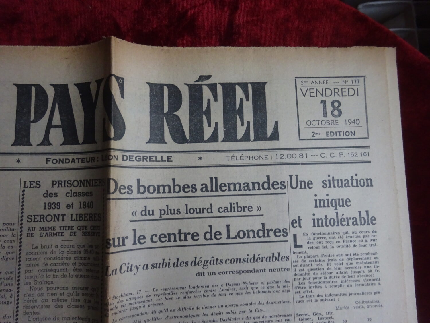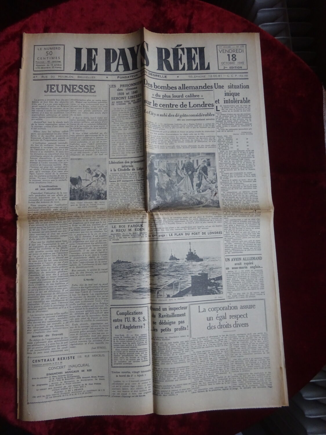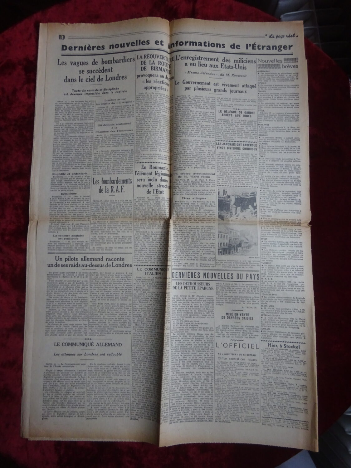 Quotidien Le Pays Réel numéro du 18 octobre 1940. 10 pages. 58 cm x 58 cm.